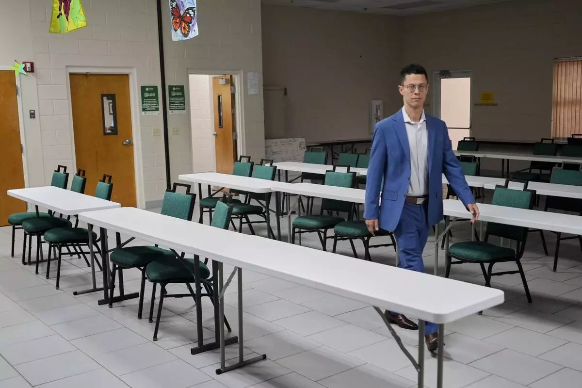 Felipe Sousa Lazaballet, executive director of the Hope Community Center walks through an area that can be set up for feeding families if they were to encounter a disaster Thursday, Aug. 14, 2025, in Apopka, Fla. (AP Photo/John Raoux)