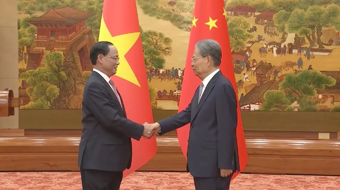 Zhao, chairman of the National People's Congress (NPC) Standing Committee, said China stands ready to work with Vietnam to further implement the outcomes of President Xi Jinping's visit to Vietnam in April, strengthen strategic communication, and deepen solidarity and coordination, so that the two countries will advance together along their respective modernization paths and accelerate the building of a China-Vietnam community with a shared future that carries strategic significance.