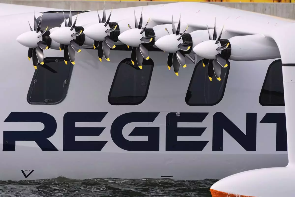 S ix of the twelve propeller-driven, electric engines hang from the REGENT Viceroy Seaglider, a winged passenger ferry, during a test run on Narragansett Bay, Wednesday, Aug. 6, 2025, off the coast of North Kingstown, R.I. (AP Photo/Charles Krupa)