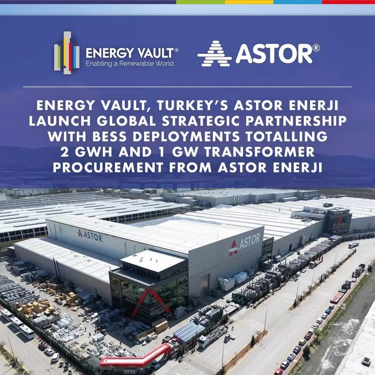 Energy Vault Holdings, Inc. (NYSE: NRGV), a global leader in grid-scale energy storage solutions, and Astor Enerji (BIST: ASTOR), a leading global manufacturer of high-quality power transformers and high-voltage equipment, today announced the signing of a Global Strategic Agreement to strengthen global supply chains for battery energy storage systems (BESS) and accelerate the deployment of large-scale energy storage and grid infrastructure across multiple markets.