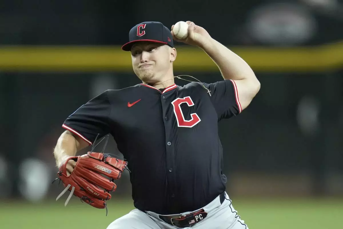Cleveland Guardians starting pitcher Parker Messick throws against the Arizona Diamondbacks during the first inning of a baseball game Wednesday, Aug. 20, 2025, in Phoenix. (AP Photo/Ross D. Franklin)