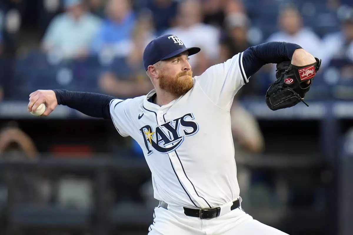 Tampa Bay Rays pitcher Drew Rasmussen delivers to the New York Yankees during the first inning of a baseball game Wednesday, Aug. 20, 2025, in Tampa, Fla. (AP Photo/Chris O'Meara)