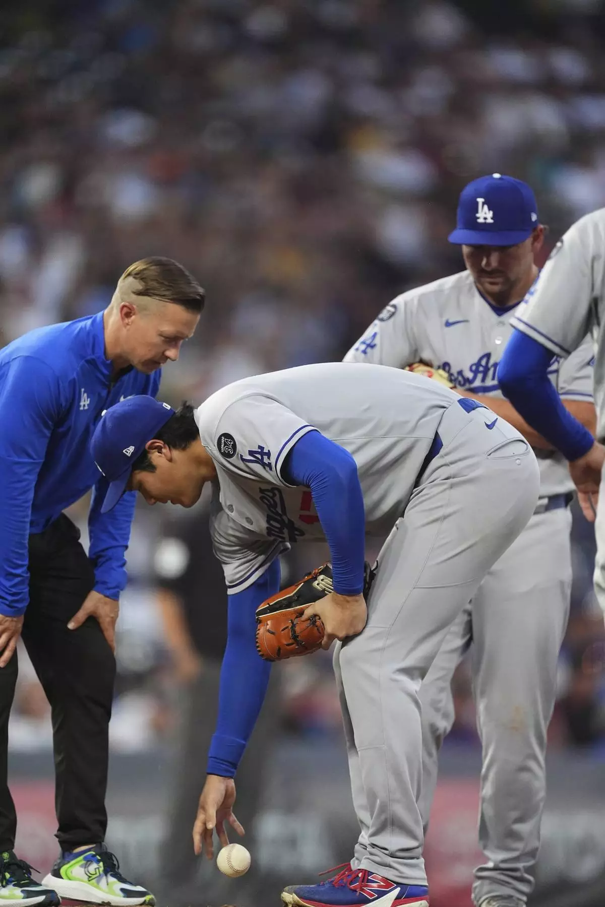Ohtani (0-1) gave up five earned runs in four innings. He allowed nine hits, tying a career high. The reigning National League MVP got hit on the right thigh by a 93-mph line drive off the bat of Colorado’s Orlando Arciao in the fourth inning that caused him to limp and grimace in pain. He stayed in the game and finished the inning. He also drew a walk in his at-bat in the fifth, but didn't return to the game when his turn came up in the eighth inning.