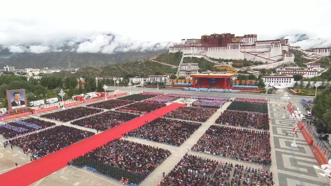Chinese President Xi Jinping on Thursday attended a grand gathering at the Potala Palace square in Lhasa, capital of Xizang Autonomous Region, to mark the region's 60th founding anniversary.