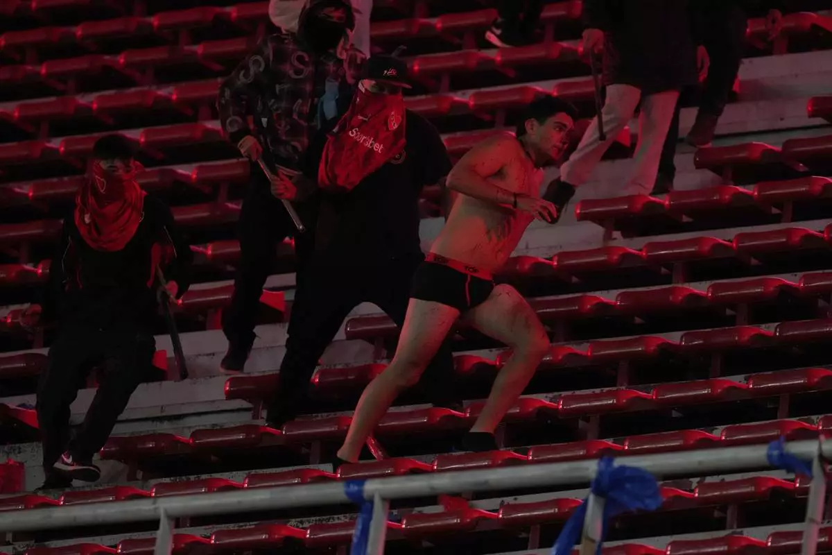 According to Argentine police, the incident began when Universidad de Chile fans, located in the upper stands, tore up seats and the stadium’s restrooms and threw blunt objects toward the lower section, where the home fans were located. Police and private security personnel were also attacked.