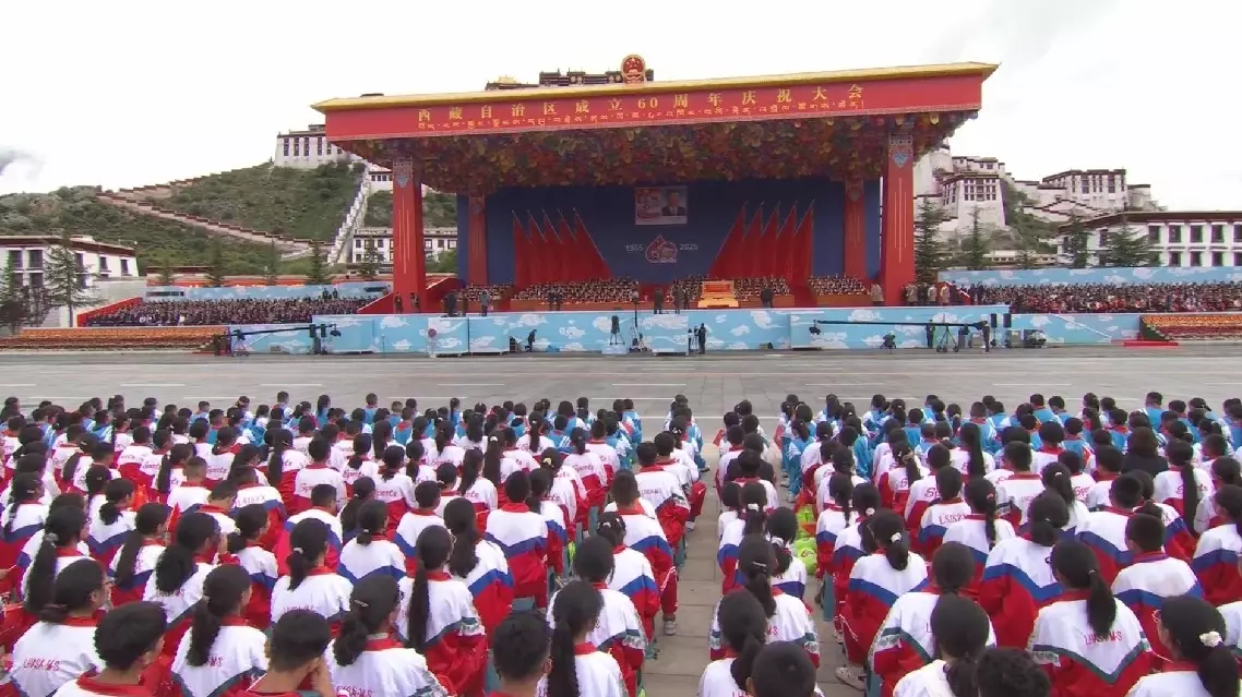 Chinese President Xi Jinping on Thursday attended a grand gathering at the Potala Palace square in Lhasa, capital of Xizang Autonomous Region, to celebrate the region's 60th founding anniversary.