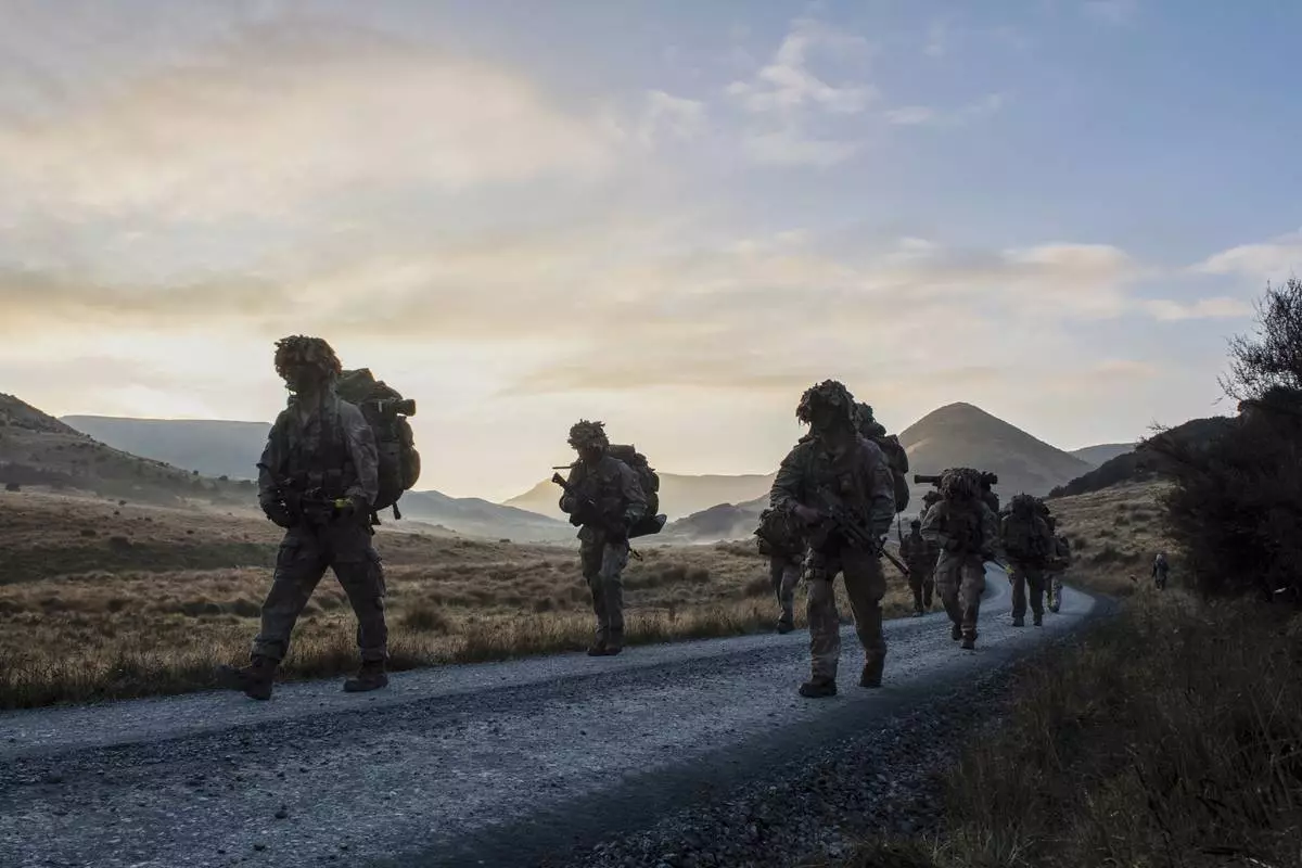 New Zealand army officer cadets move on exercise in the Waiouru training area in the central North Island of New Zealand, May 6, 2022. (Corporal Naomi James/NZDF via AP)