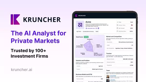 SINGAPORE, Aug. 21, 2025 /PRNewswire/ -- If there is one golden startup needle in a haystack, Kruncher enables investors to find 100 golden needles in a mountain.