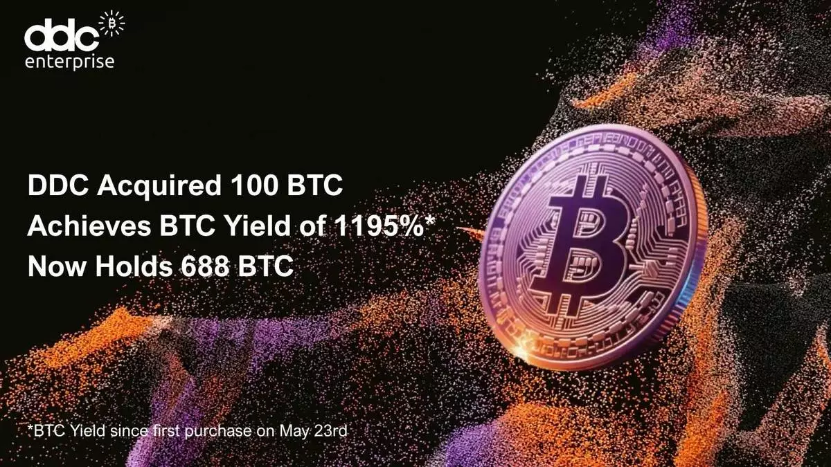 DDC Enterprise Announces Third Bitcoin Purchase in 8 Days, Acquires 100 BTC, Total Holdings Reach 688 BTC