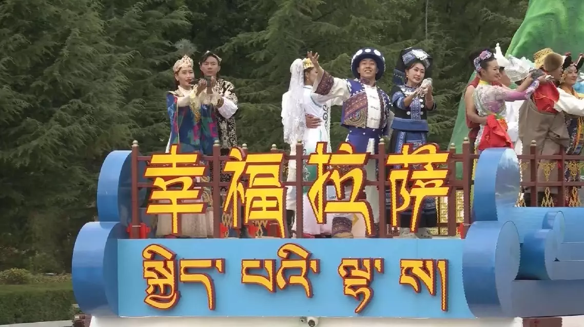 A total of 26 formations and floats paraded past the Potala Palace square in jubilant music. People of various ethnic groups, dressed in traditional costumes, danced with enthusiasm and joy, expressing their happiness for leading a better life and their gratitude to the Party and the country.