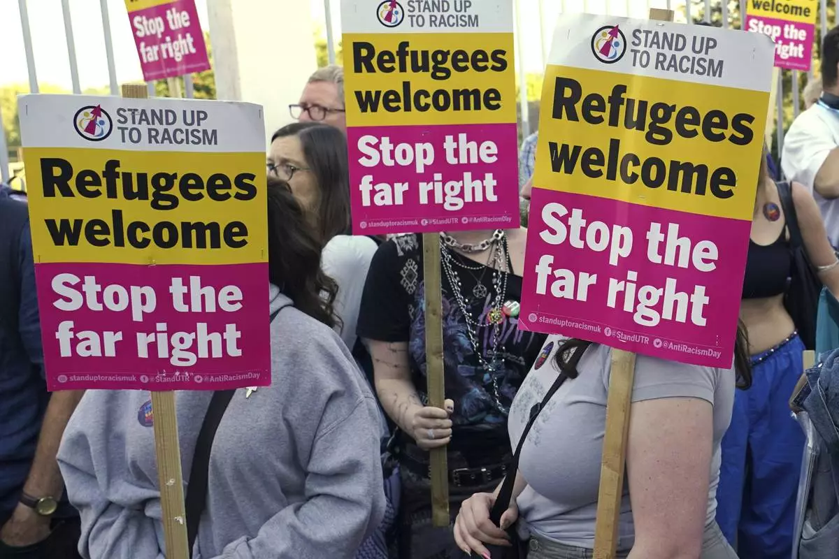 The High Court decision Tuesday in favor of the council — which the government wants to appeal — inspired anti-migrant demonstrators gathering under the banner of Abolish Asylum System to protest over the weekend. The group Stand up to Racism rallied counterprotesters.