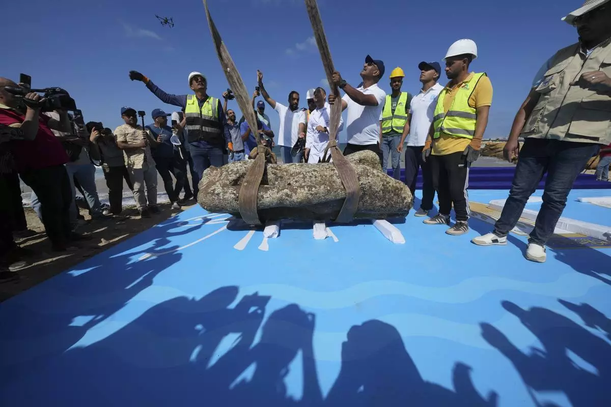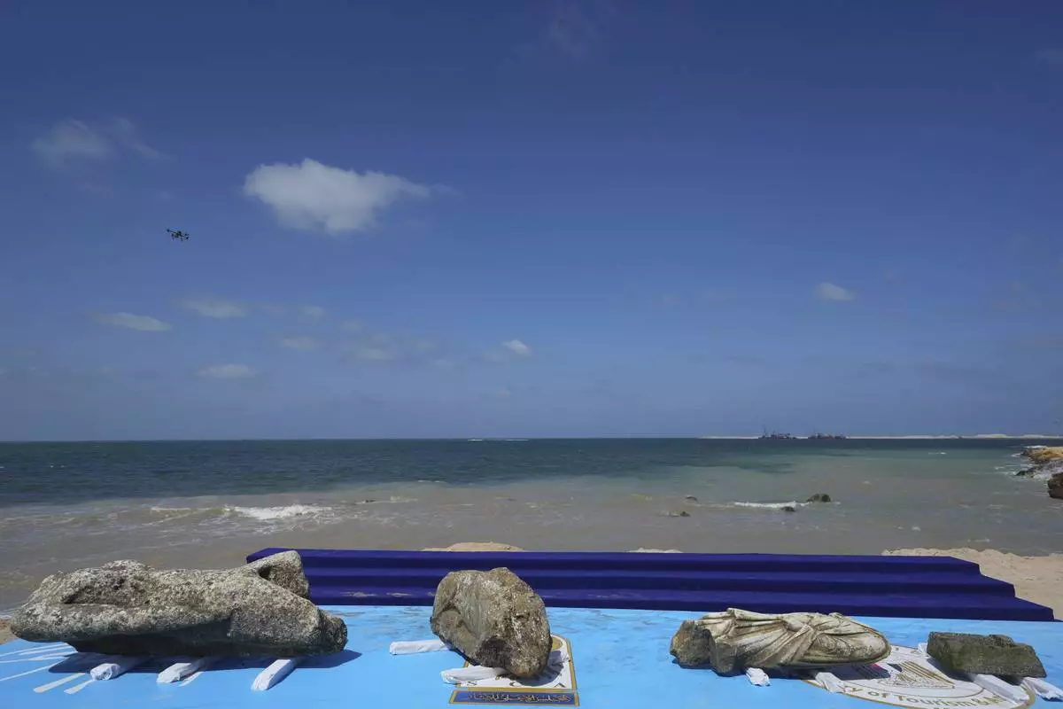 Ancient artifacts are on display after they were lifted out of the water in Abu Qir Bay at he Mediterranean city of Alexandria, Egypt, Thursday, Aug. 21, 2025. (AP Photo/Amr Nabil)