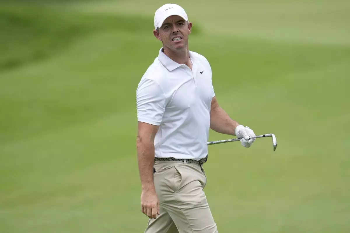 Rory McIlroy, of Northern Ireland, watches his shot on the first fairway during the first round of the Tour Championship golf tournament, Thursday, Aug. 21, 2025, in Atlanta. (AP Photo/Mike Stewart)
