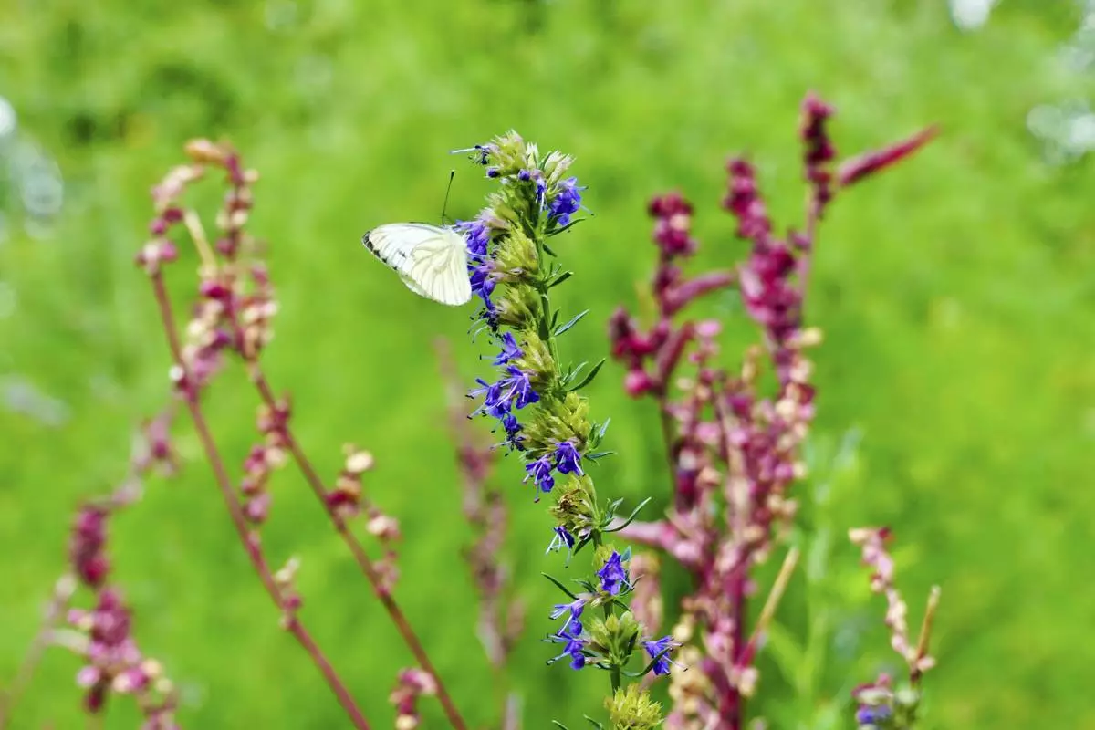 Hyssopus officinalis and Atripex Hortensis plants grow in Martin Roetzel's 'The Monk Garden' in Berlin, Germany, Sunday, Aug. 17, 2025. (AP Photo/Fanny Brodersen)