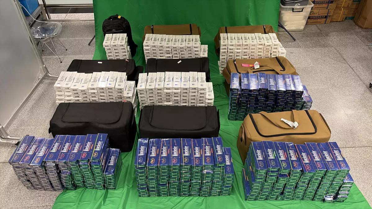 The second case involved a 20-year-old incoming male passenger. During customs clearance, Customs officers seized 64 400 duty-not-paid cigarettes, with an estimated market value of about $322,000 and a duty potential of about $212,900, from his personal baggage at Hong Kong International Airport on April 21. The passenger was subsequently arrested. He was sentenced to six months' imprisonment and fined $1,000 today.