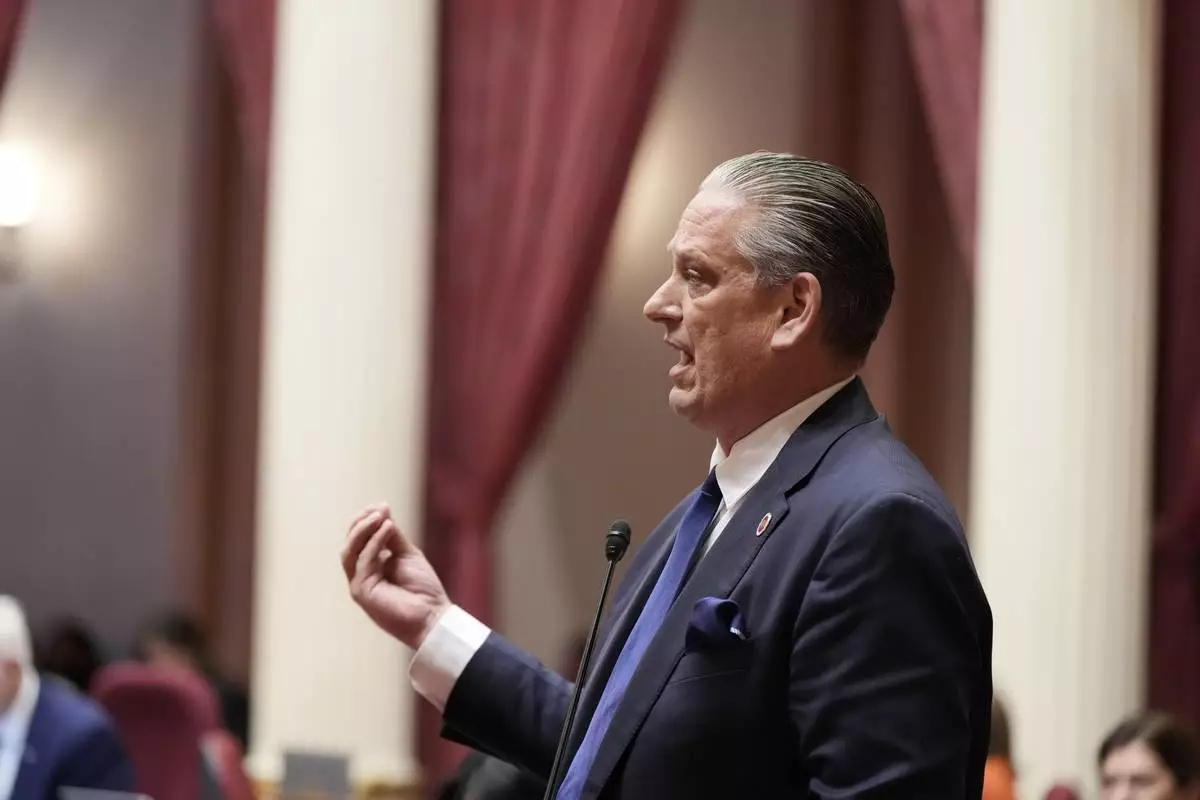Republican state Sen. Tony Strickland speaks as legislators consider redrawing California's congressional map, on Thursday, Aug. 21, 2025, in Sacramento, Calif. (AP Photo/Godofredo A. Vásquez)