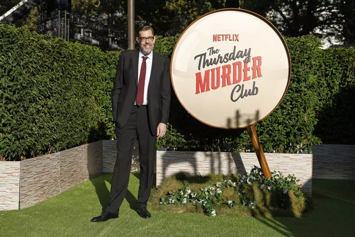 Richard Osman poses for photographers upon arrival at the screening of the film 'The Thursday Murder Club' on Thursday, Aug. 21, 2025, in London. (Photo by Millie Turner/Invision/AP)