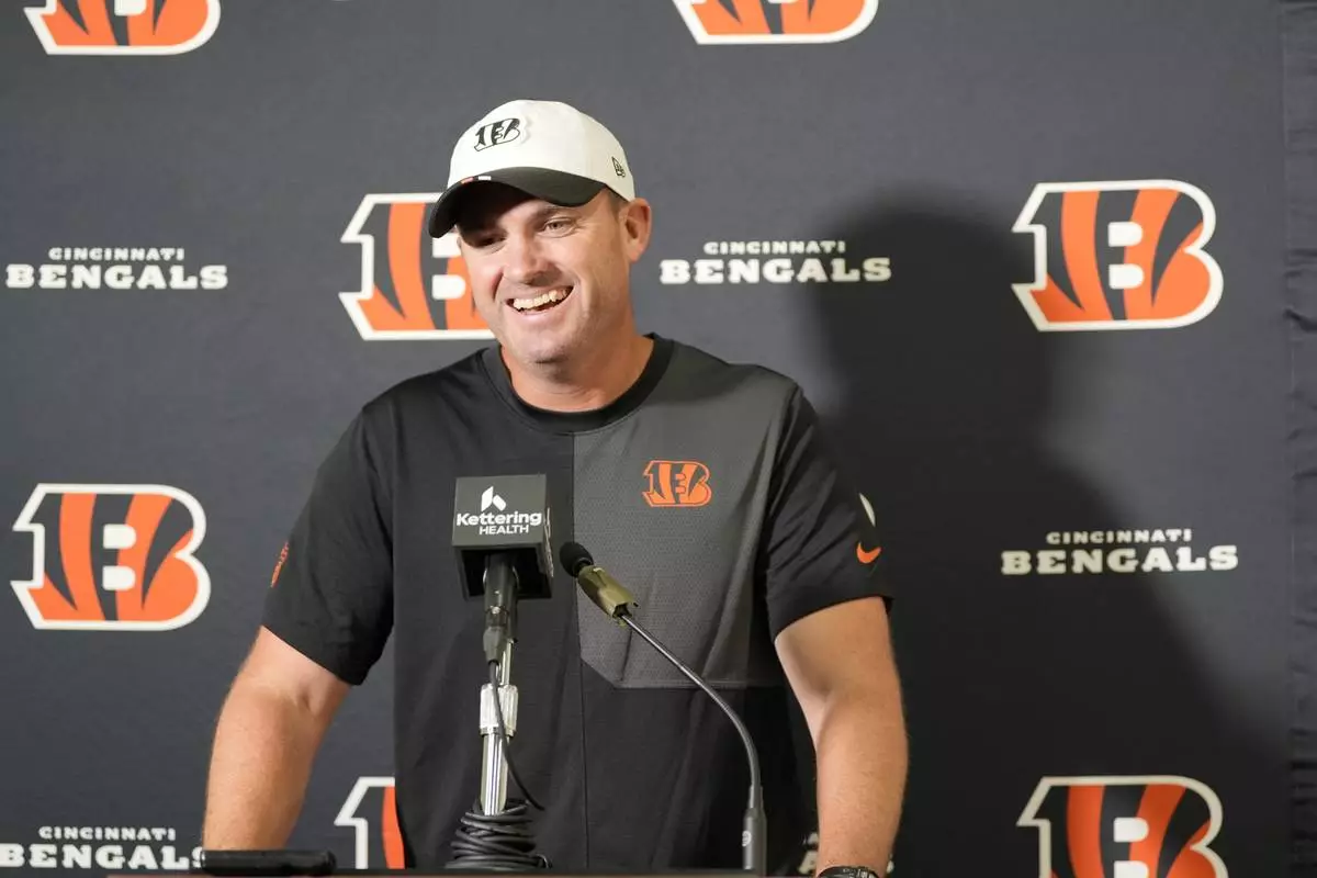 Cincinnati Bengals head coach Zac Taylor speaks during a news conference following a preseason NFL football game against the Washington Commanders Monday, Aug. 18, 2025, in Landover, Md. (AP Photo/Stephanie Scarbrough)