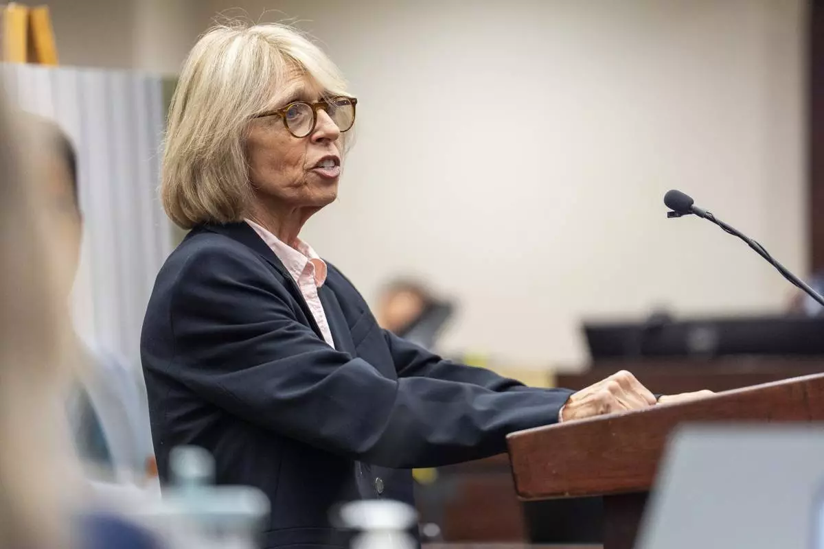 Defense attorney Jackie Fulford presents the defense's opening statement in the trial for Donna Adelson on Friday, Aug. 22, 2025 in Tallahassee, Fla. (Alicia Devine/Tallahassee Democrat via AP, Pool)