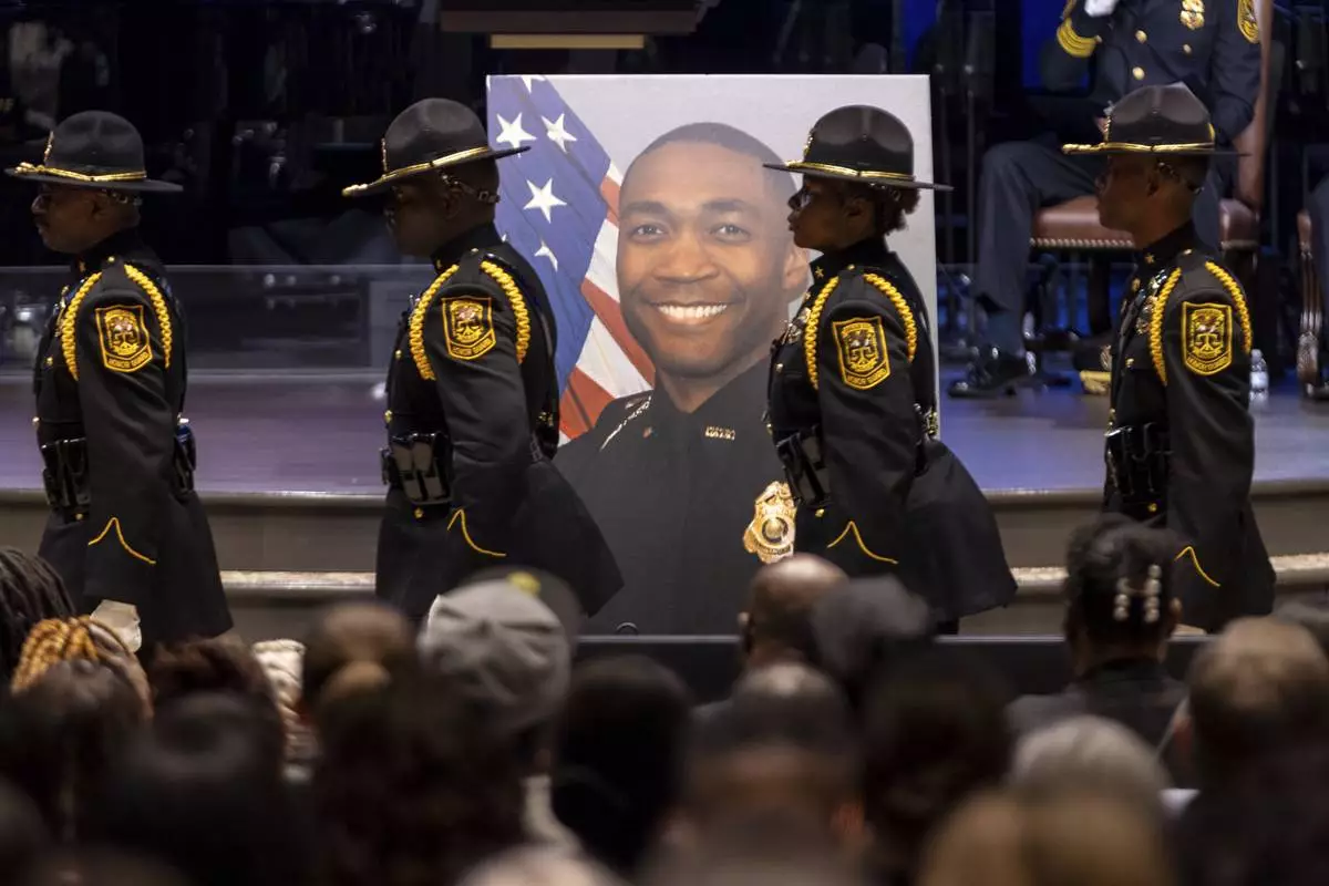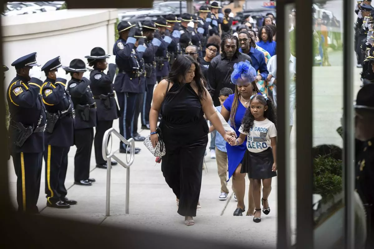 Hundreds of law enforcement officers from DeKalb County and the surrounding region filled the church. CDC employees also attended. Local officials and Georgia Gov. Brian Kemp attended. Rose's young daughter leaned on his wife's shoulder with blue bows in her hair and a shirt that said, “My daddy is my hero.”