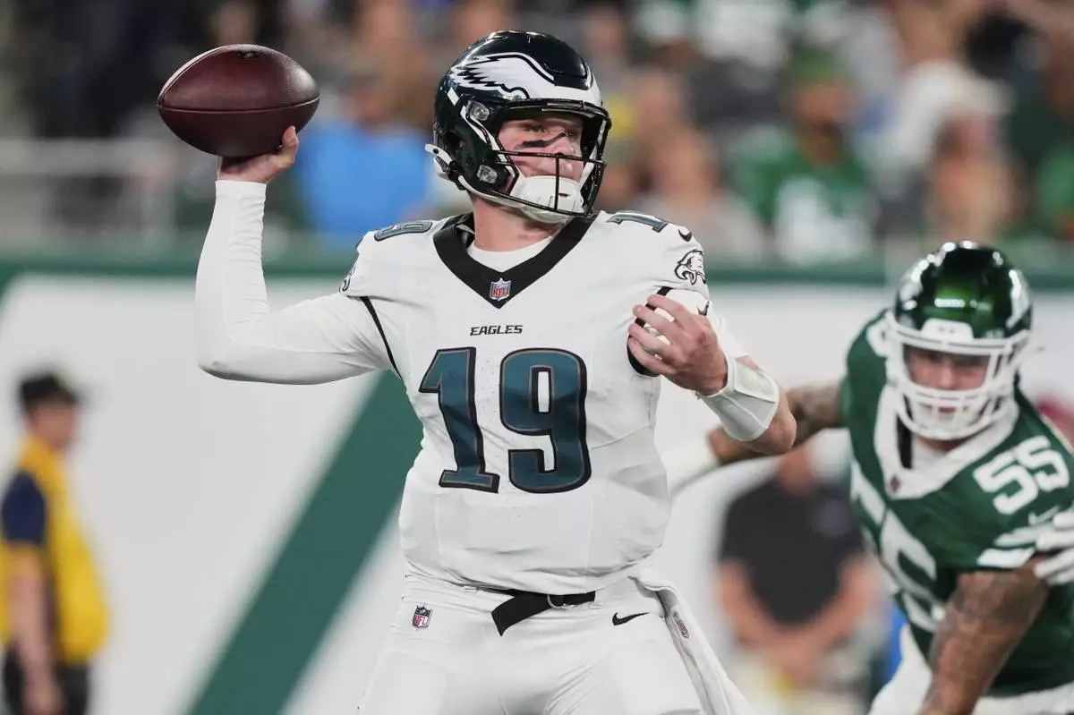 EAST RUTHERFORD, N.J. (AP) — Kyle McCord led Philadelphia on five scoring drives while playing the entire game in an uneven performance, Montrell Johnson had a 15-yard touchdown run and the Eagles held on for a 19-17 victory over the New York Jets in a mostly sluggish preseason matchup of backups Friday night.