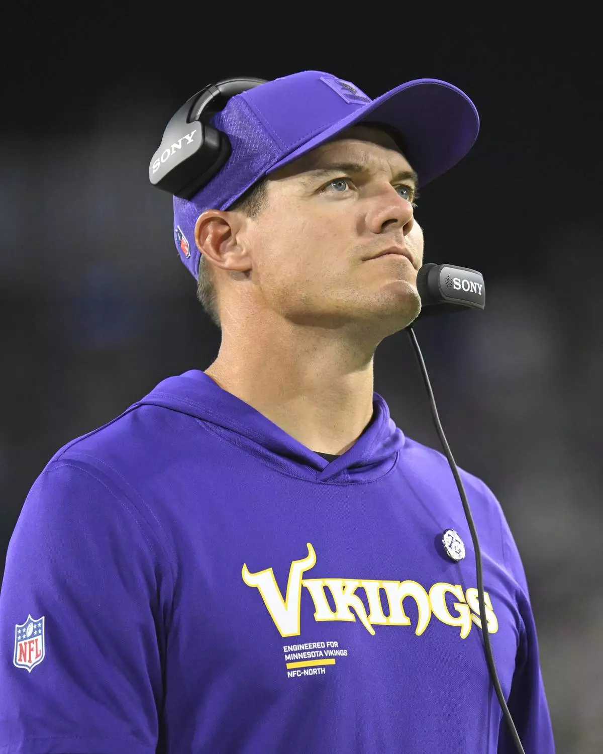 Minnesota Vikings head coach Kevin O'Connell watches from the sideline during the first half of a preseason NFL football game against the Tennessee Titans, Friday, Aug. 22, 2025, in Nashville, Tenn. (AP Photo/John Amis)