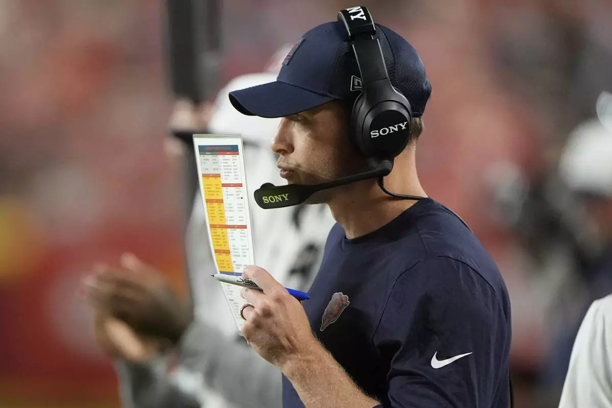 Chicago Bears head coach Ben Johnson watches from the sidelines during the second half of a preseason NFL football game against the Kansas City Chiefs Friday, Aug. 22, 2025, in Kansas City, Mo. (AP Photo/Charlie Riedel)