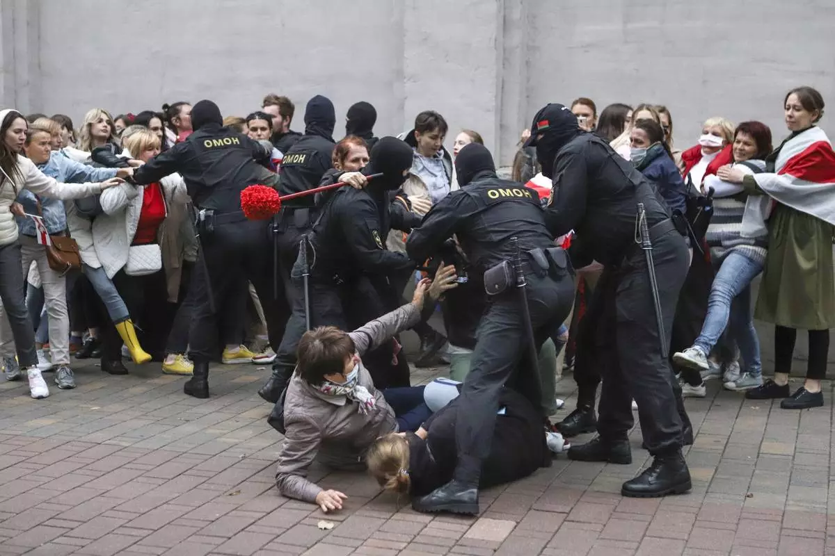 FILE - Police officers detain protesters during a rally in Minsk, Belarus, on Sept. 8, 2020, in support of opposition figure Maria Kolesnikova following a disputed presidential election the previous month. (AP Photo, File)
