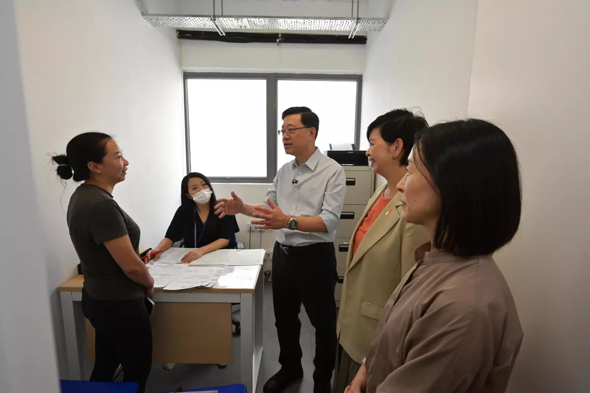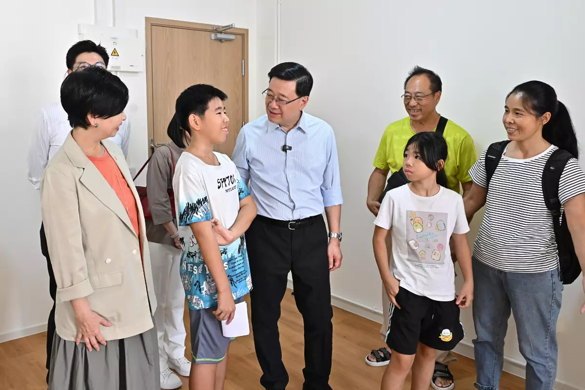 The Chief Executive, Mr John Lee, visited Kwun Tong District today (August 23) to tour the Choi Hing Road Light Public Housing project (Choi Hing Road project), Lower Ngau Tau Kok Estate and the East Kowloon Cultural Centre (EKCC) and listen to the views of members of the public on the upcoming Policy Address.