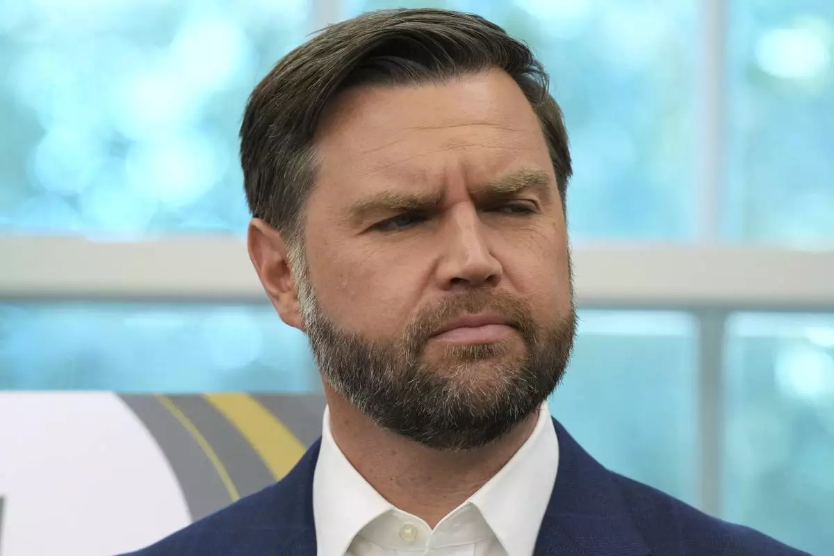 Vice President JD Vance listens as President Donald Trump speaks in the Oval Office of the White House, Friday, Aug. 22, 2025, in Washington. (AP Photo/Jacquelyn Martin)
