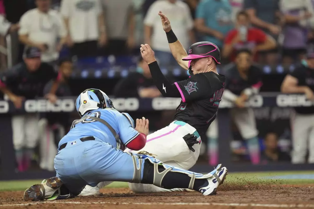MIAMI (AP) — Bo Bichette singled in automatic runner George Springer in the 12th inning to give the Toronto Blue Jays a 7-6 win over the Miami Marlins on Saturday.