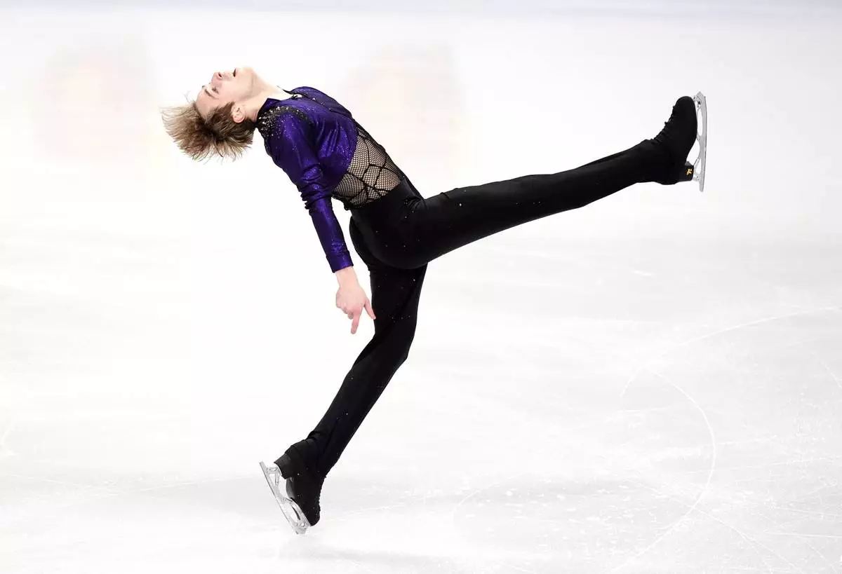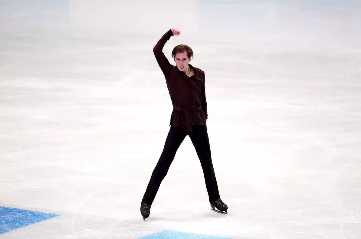 Estonia's Aleksandr Selevko competes during the Men's Short Program on day two of the ISU European Figure Skating Championships in Sheffield, Thursday, Wednesday, Jan. 15, 2026. (Mike Egerton/PA via AP)