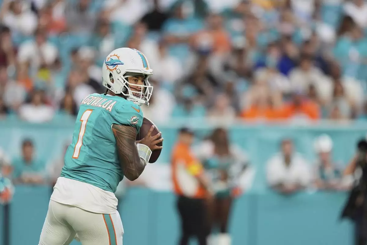 Tagovailoa played the first three drives and sat after connecting with Malik Washington early in the second quarter to put Miami ahead 7-0. Washington caught Tagovailoa’s pass inside the 20-yard line, turned to the outside then shifted inside before sprinting to the end zone.