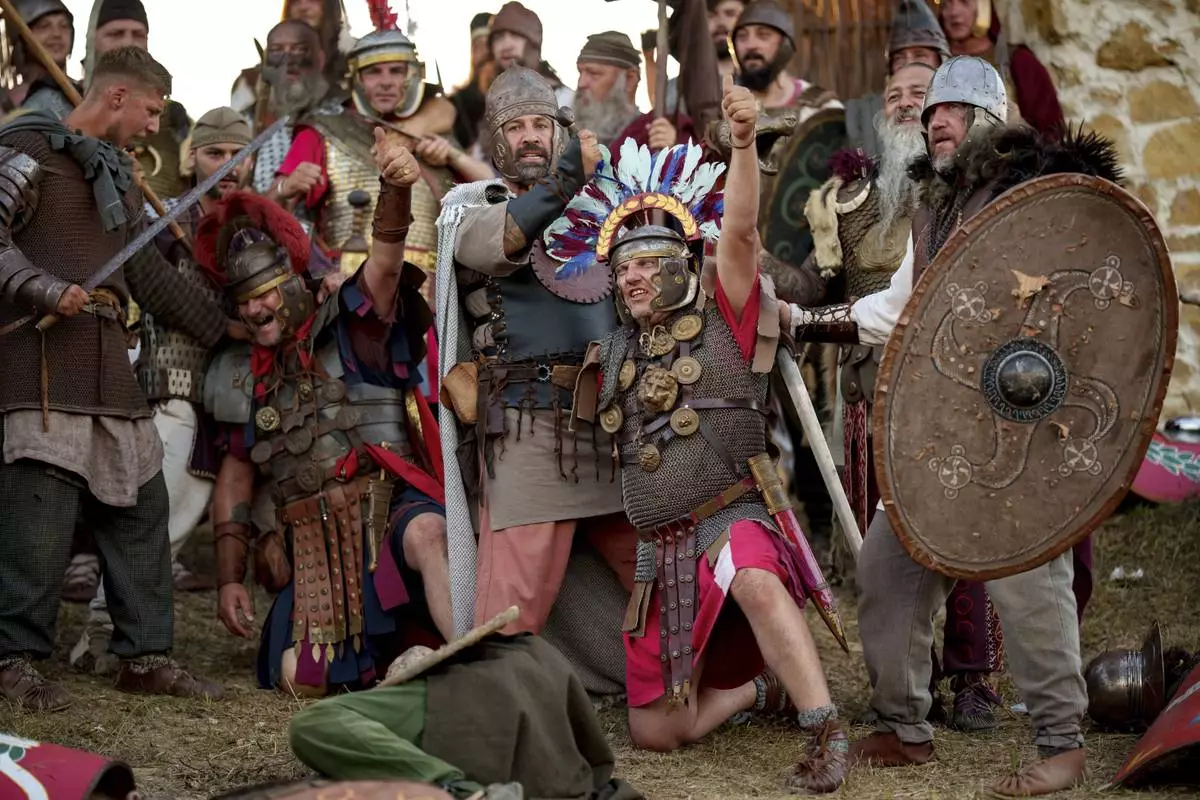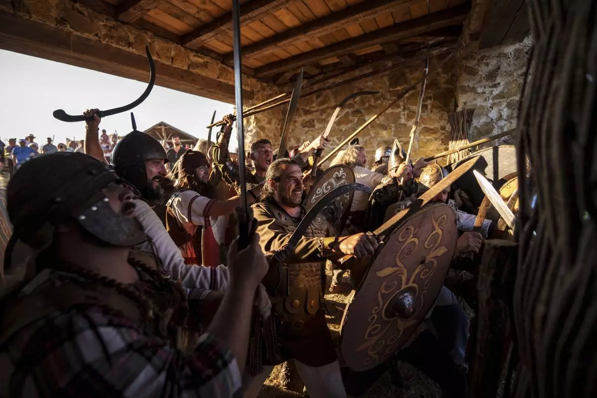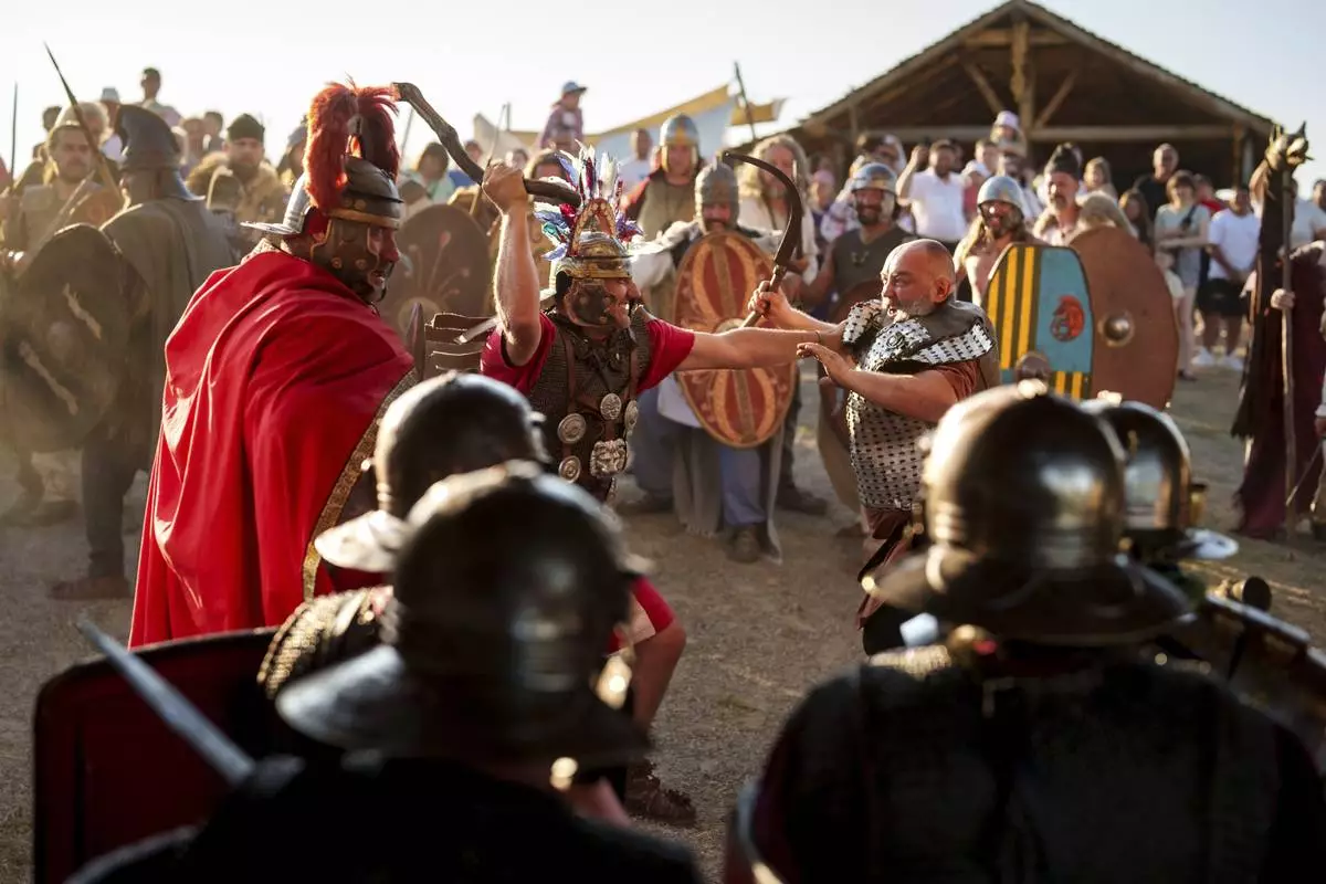 POIANA, Romania (AP) — History buffs dressed as Roman soldiers and Dacian warriors clashed in front of a crowd in a reenactment of a struggle culminating in the Roman conquest of land in present-day Romania.