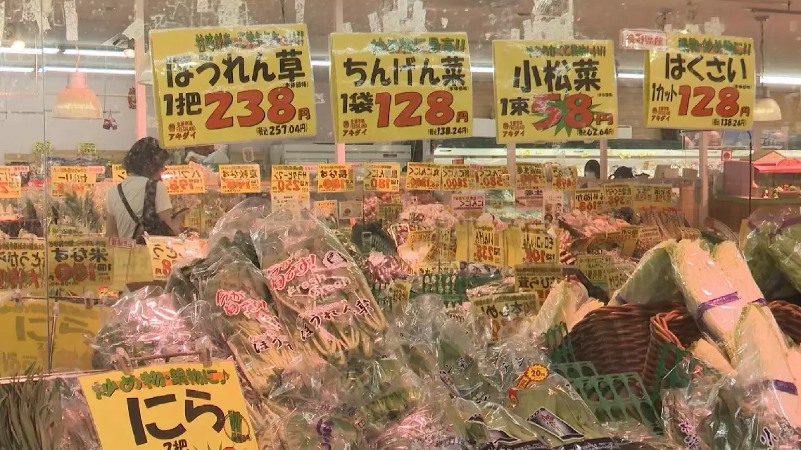 In a budget supermarket in Japan's Saitama Prefecture, the prices of common vegetables, such as tomatoes, in the fresh produce section have surged to nearly double the levels of the same period of last year.