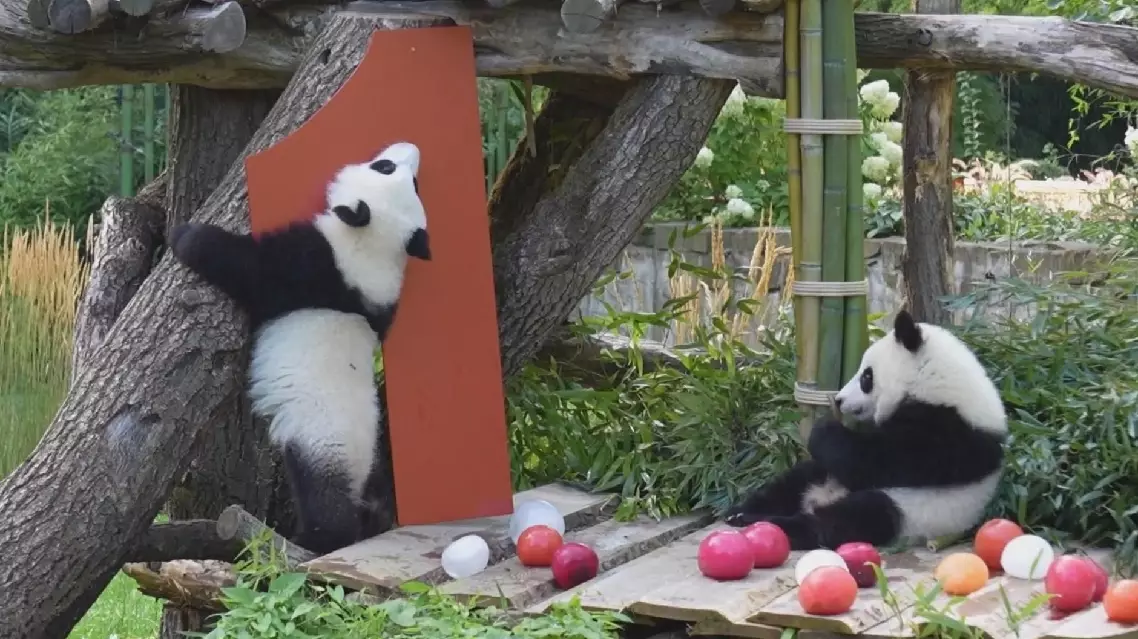 "A year ago, when Meng Hao and Meng Tian were born, they weighed only 150 grams each, with their visual and auditory senses undeveloped and their bodies completely hairless. Now, a year has passed, and their weight has reached 21 kilograms each, showing significant growth. They are in excellent health, with distinct black and white coat colors. Giant pandas have played a very positive role in promoting people-to-people exchanges, acting as cultural ambassadors for China in Germany and crucial advocates for species preservation," said Florian Sicks, curator of the Panda Garden at Zoo Berlin.