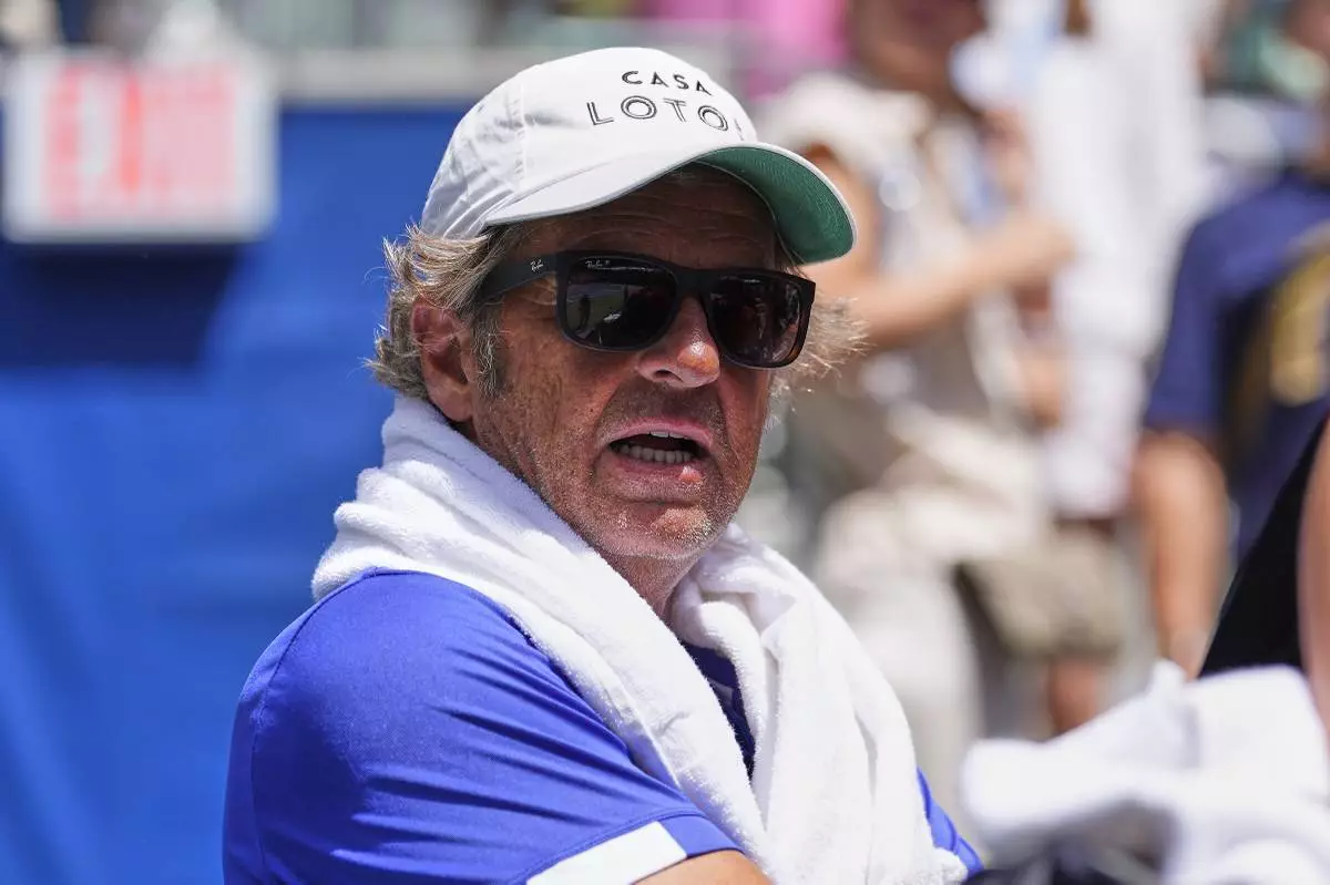 Francisco Roig, coach of Emma Raducanu, of Great Britain, watches play during the first round of the US Open tennis championships, Sunday, Aug. 24, 2025, in New York. (AP Photo/Yuki Iwamura)