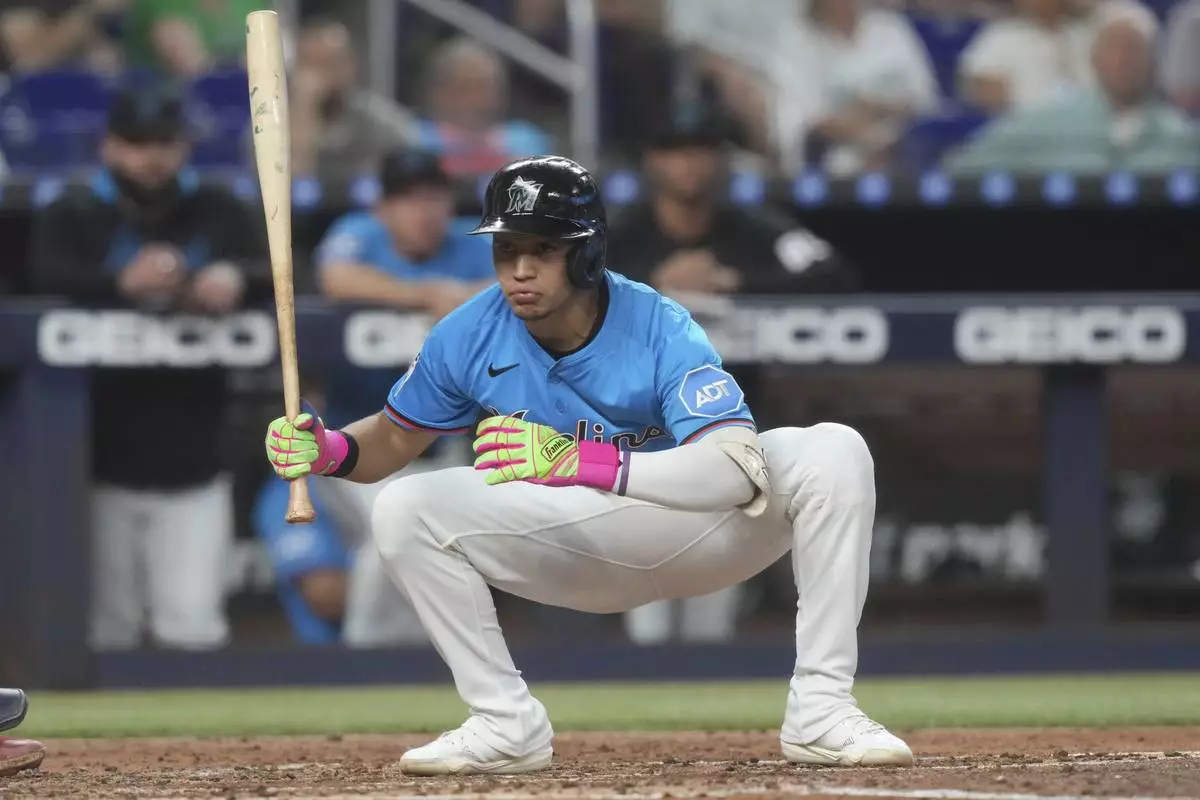 MIAMI (AP) — Jakob Marsee hit a bases-loaded triple and Eury Pérez pitched three-hit ball into the seventh inning to lead the Miami Marlins past the Toronto Blue Jays 5-3 on Sunday.