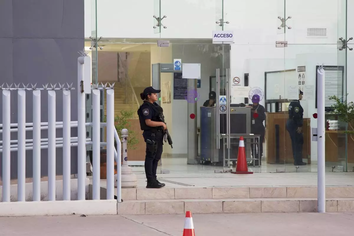 A police officer guards the entrance to the courthouse in Hermosillo, Mexico, where boxer Julio César Chávez Jr.'s hearing takes place on Saturday, 23rd August 2025. (AP Photo/Abraham Tellez)