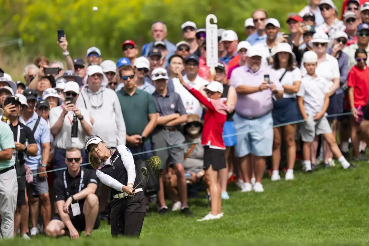 Canada's Brooke Henderson chips onto the green of the fifth hole during the fourth round of the CPKC Women's Open at the Mississauga Golf and Country Club in Mississauga, Ontario, Sunday, Aug. 24, 2025. (Thomas Skrlj/The Canadian Press via AP)