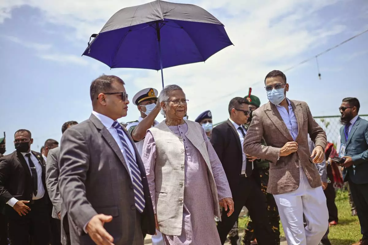Chief Adviser Professor Muhammad Yunus, a Nobel Peace Prize laureate, leaves after attending a stakeholders' dialogue on the Rohingya situation in Cox's Bazar, Bangladesh, on Monday, Aug. 25, 2025. (AP Photo/Mahmud Hossain Opu)