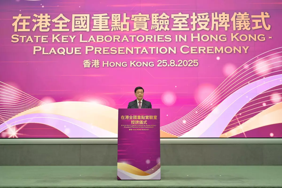 The Chief Executive, Mr John Lee, witnessed the presentation of plaques to 15 State Key Laboratories (SKLs) in Hong Kong by the Minister of Science and Technology, Mr Yin Hejun, during a presentation ceremony today (August 25). The Director of the Liaison Office of the Central People's Government in the Hong Kong Special Administrative Region, Mr Zhou Ji, also attended the ceremony.