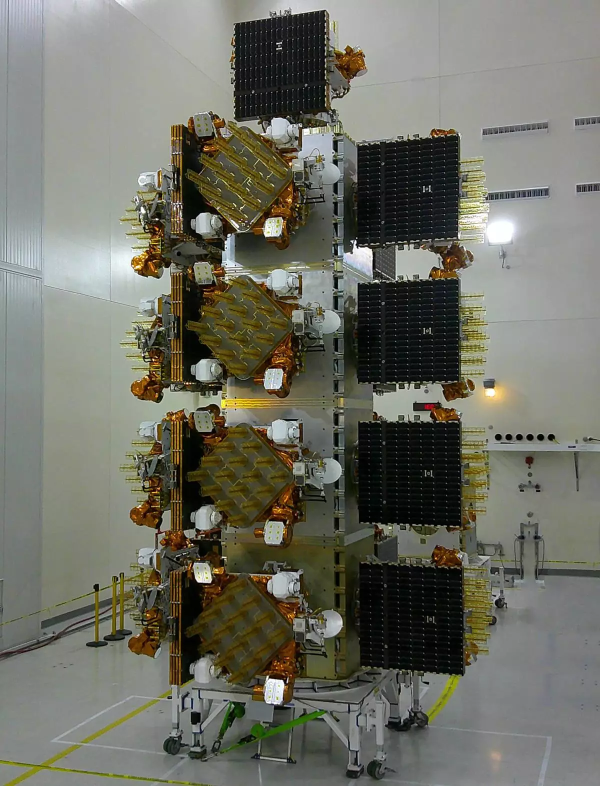 Four of 21 satellites manufactured by York Space Systems for Space Development Agency's upcoming Tranche 1 Transport Layer launch.