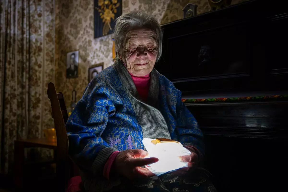 Zinaida Hlyha, 76, said she heats water on her gas stove and puts it in bottles that she tucks into bed. She says she doesn’t complain because Ukrainian soldiers on the roughly 1,000-kilometer (600-mile) front line have it worse.