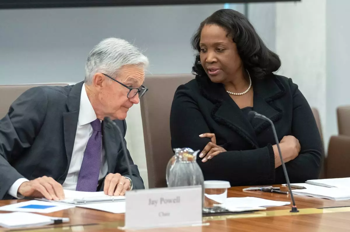 FILE - Board of Governors of the Federal Reserve member Lisa Cook, speaks during a conversations with leaders from organizations that include nonprofits, small businesses, manufacturing, supply chain management, the hospitality industry, and the housing and education sectors at the Federal Reserve building, Sept. 23, 2022, in Washington. (AP Photo/Manuel Balce Ceneta, File)