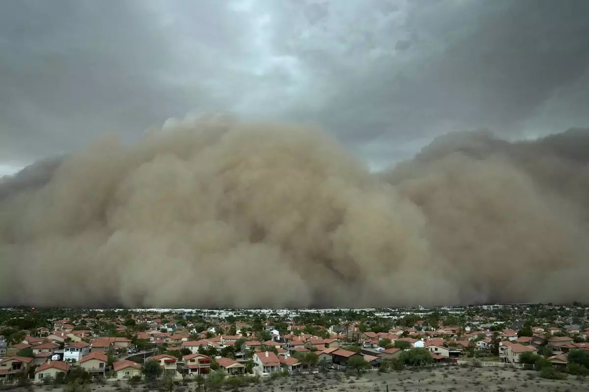 The wall of dust towering hundreds of feet (meters) high dwarfed the city's neighborhoods. Called a haboob, the wind-driven phenomenon blackened skies and initially knocked out electricity for 55,000 customers late Monday afternoon.