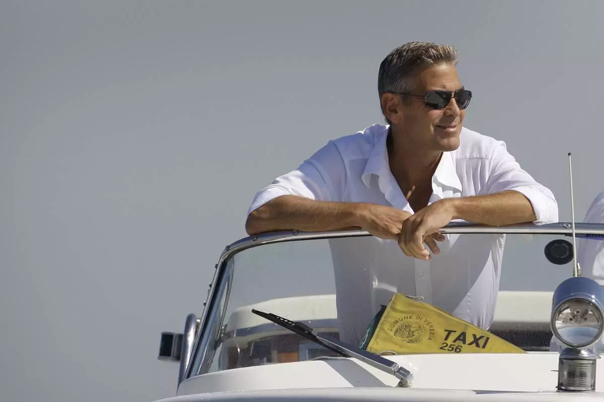 FILE - George Clooney arrives in Venice, Italy on a taxi boat for the 65th Venice Film Festival, Tuesday Aug. 26, 2008. (AP Photo/Joel Ryan, File)