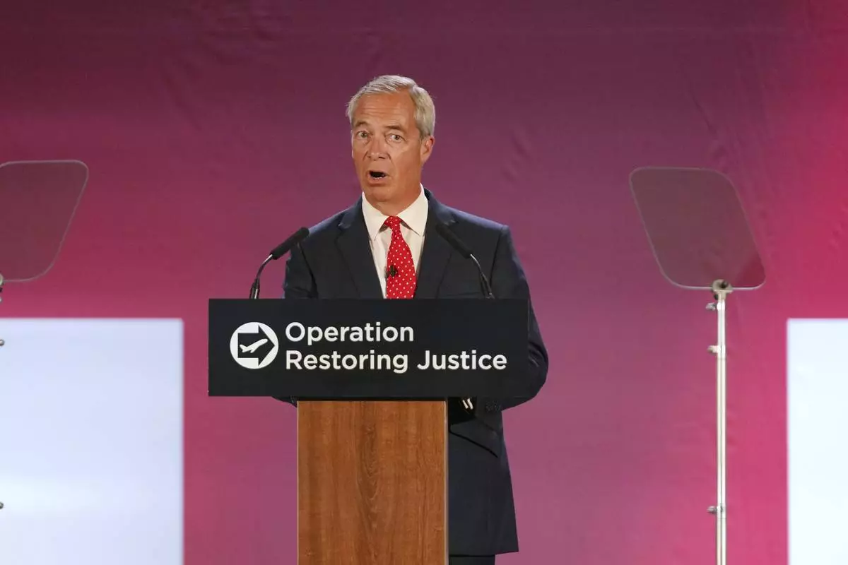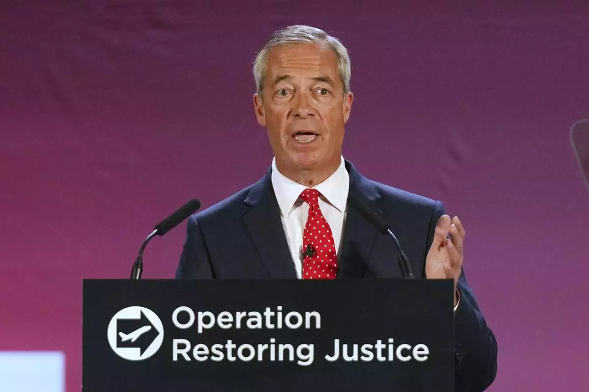LONDON (AP) — Nigel Farage, the leader of Britain's hard-right Reform UK party, said Tuesday that if he wins the next election he will leave the European Convention on Human Rights and immediately detain and deport anyone who arrives in the country illegally, including children.