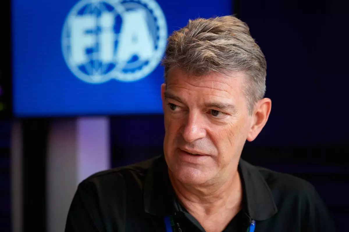 Graeme Lowdon, the team principal of the new Formula One team Cadillac, talks to The Associated Press during an interview at the Silverstone racetrack, ahead of the British Formula One Grand Prix, in Silverstone, England, Sunday, July 6, 2025. (AP Photo/Darko Bandic)