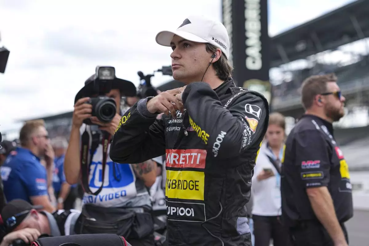 FILE - Colton Herta prepares to drive during qualifications for the Indianapolis 500 auto race at Indianapolis Motor Speedway in Indianapolis, May 17, 2025. (AP Photo/Michael Conroy, File)